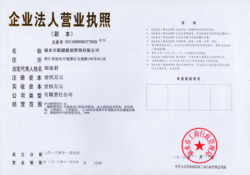 水利工程施工監(jiān)理資質(zhì)證書